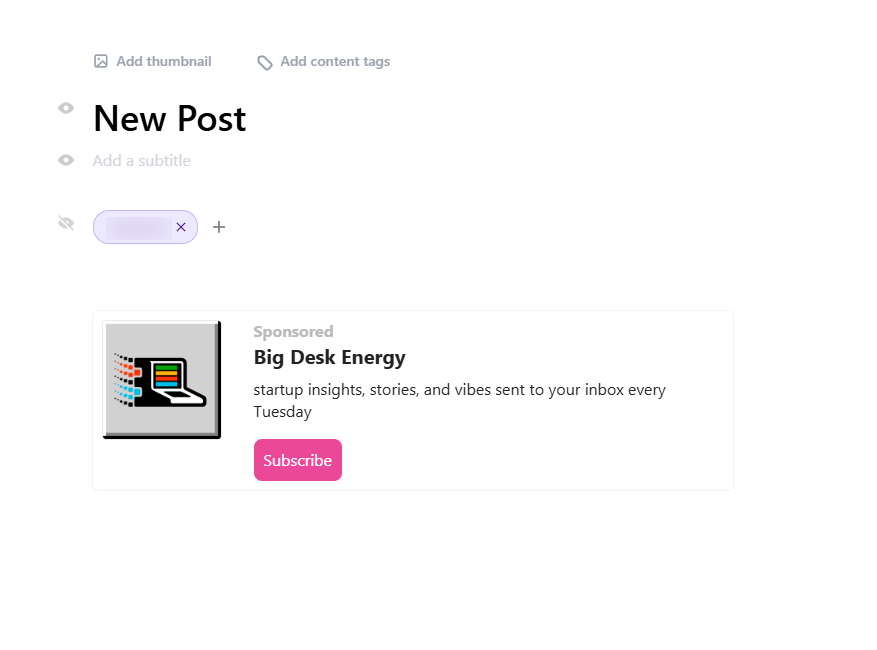 - Grow side: Enable your Boosts offer to appear in posts, helping you acquire subscribers from other publications’ audiences.