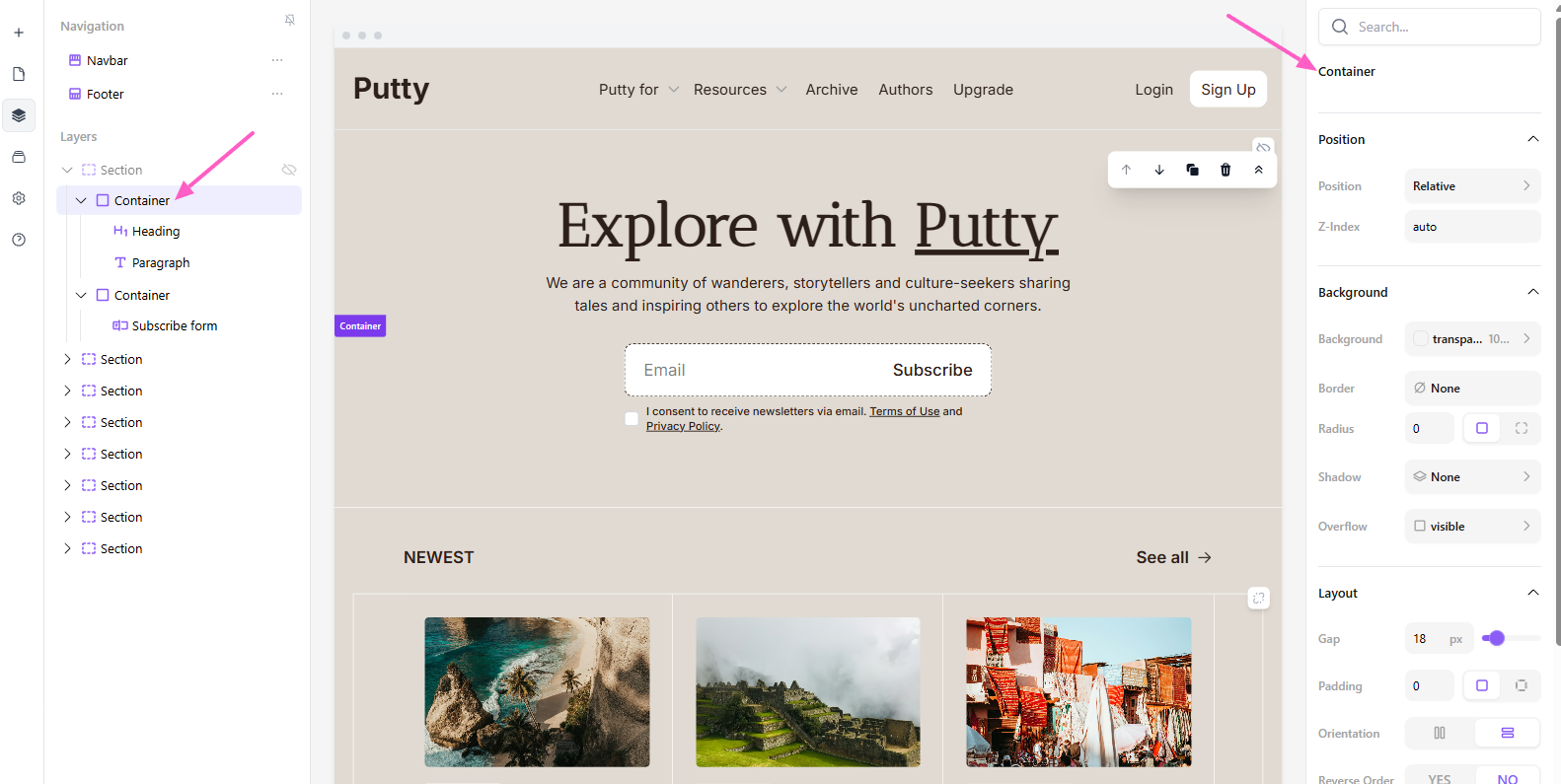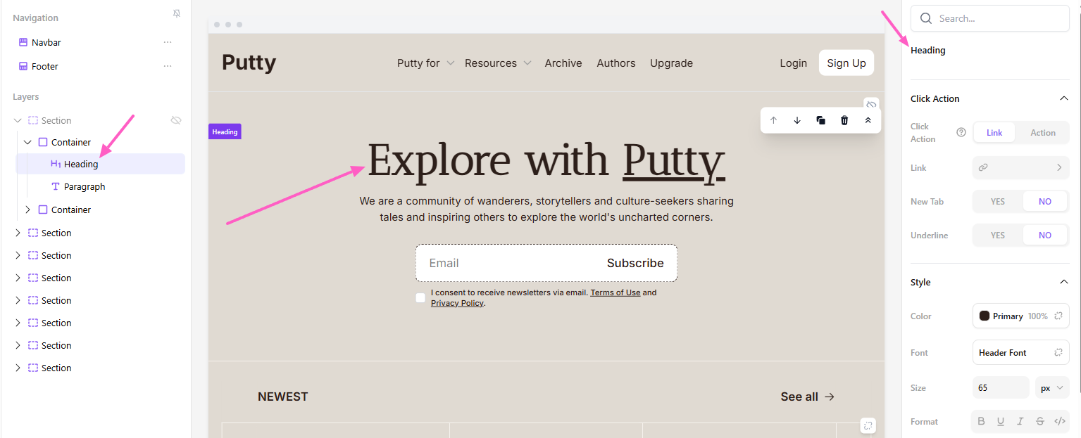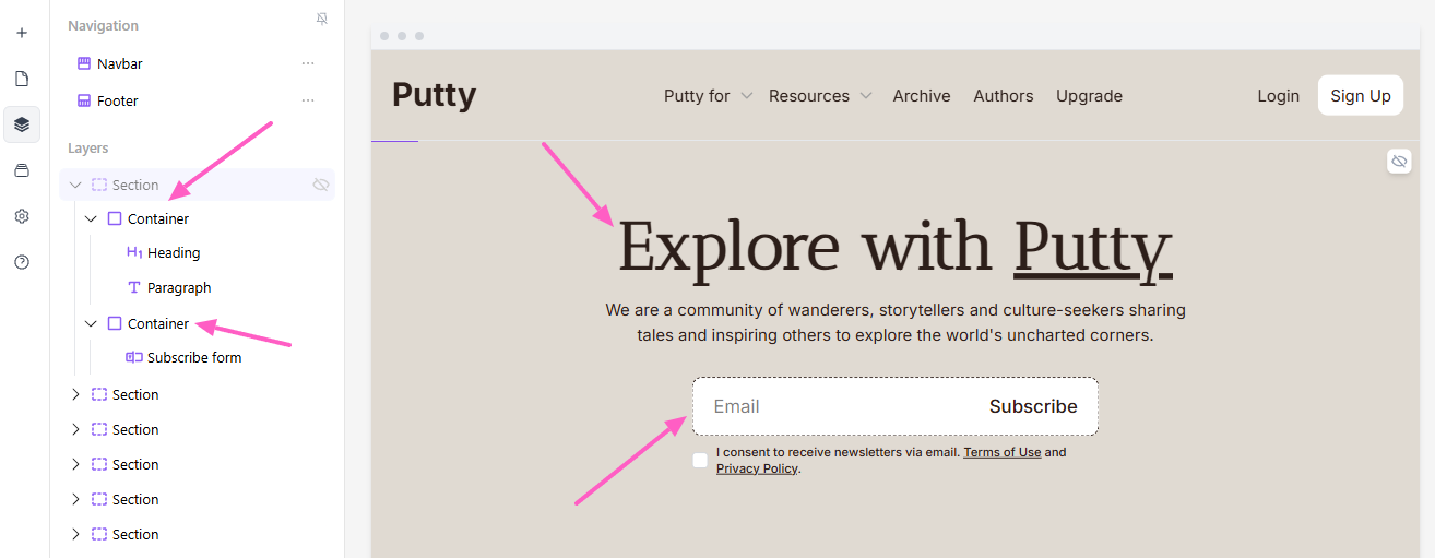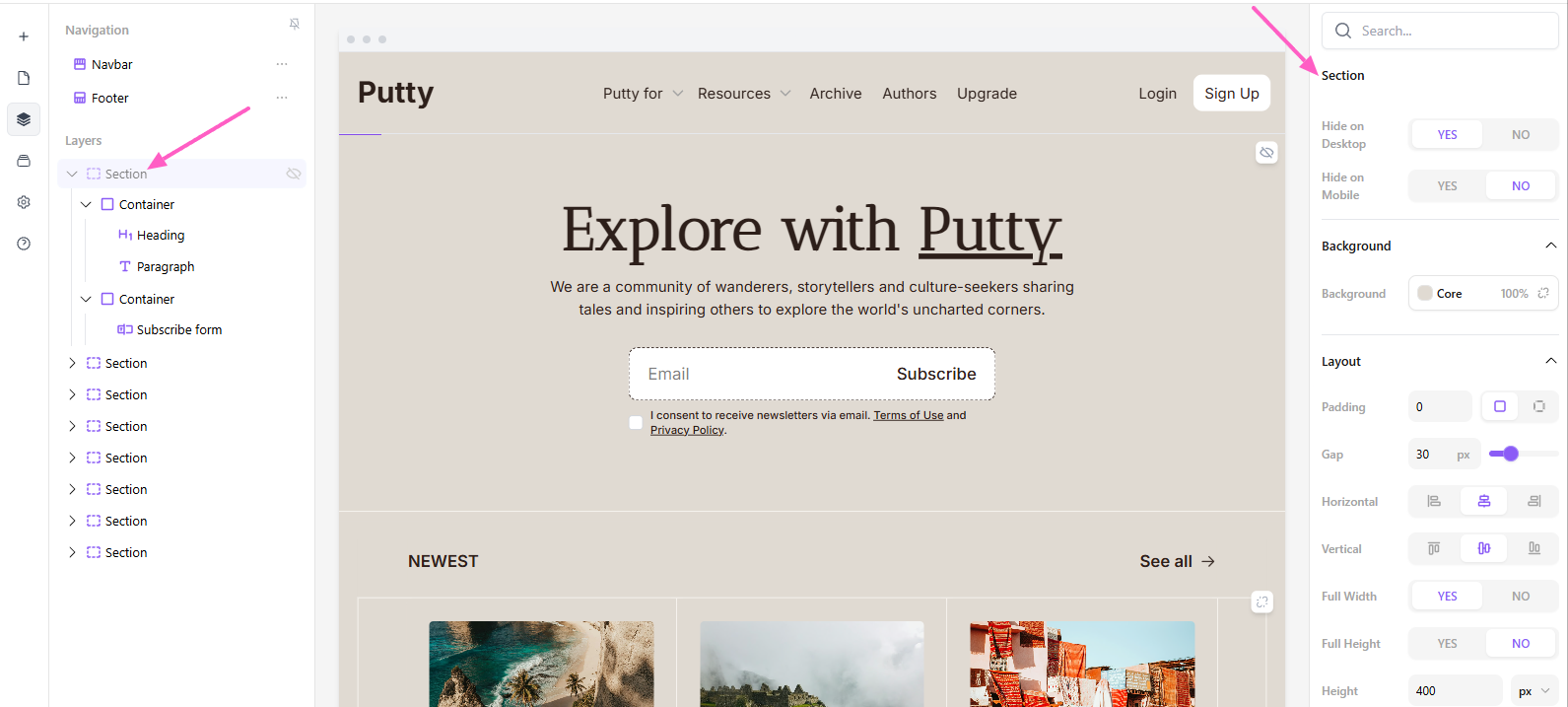 How layers work in the beehiiv Website Builder